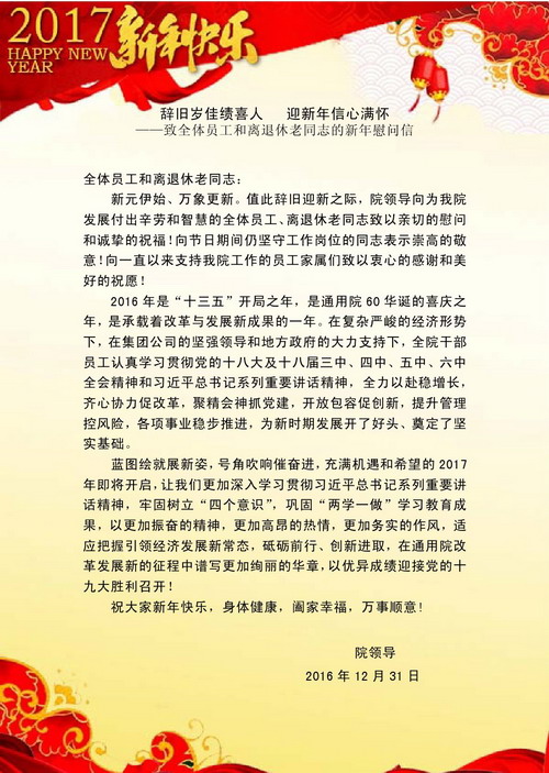 辭舊歲佳績喜人 迎新年信心滿懷――致全體員工和離退休老同志的新年慰問信